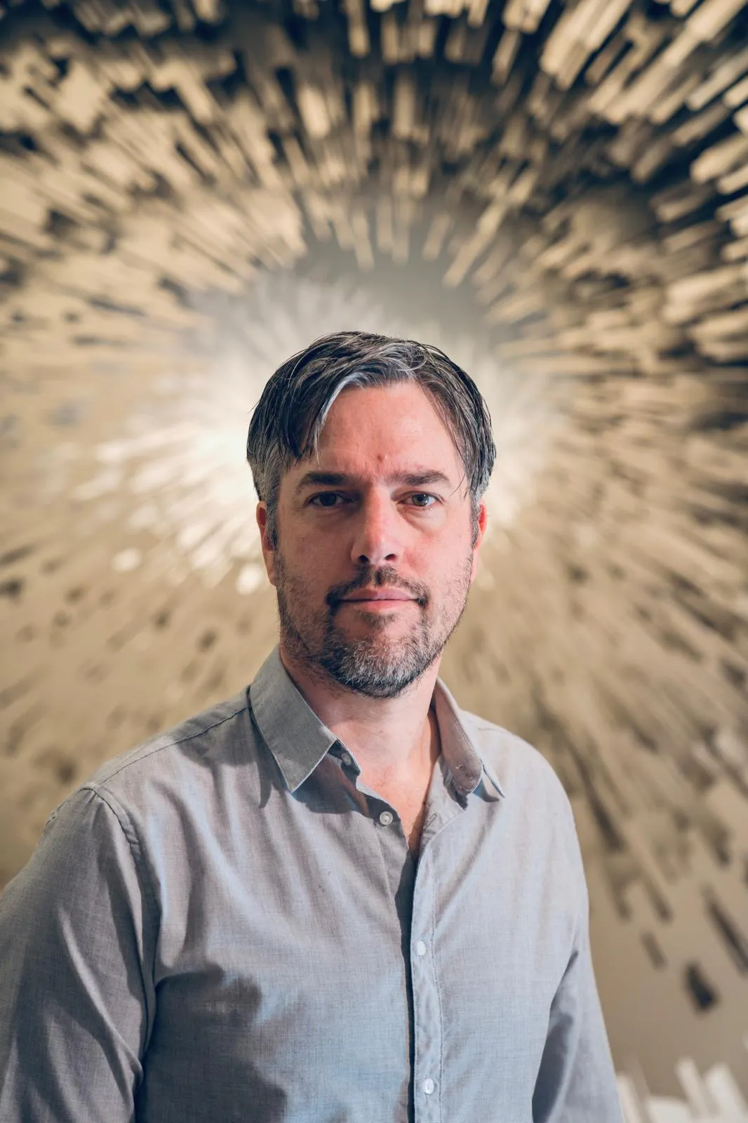 David Spriggs (b. 1978, Manchester, England) is a Canadian artist recognized for his large-scale, three-dimensional installations that exist at the intersection of two and three dimensions. Through a unique process he pioneered in 1999—layering transparent images—Spriggs explores themes of perception, space-time, color theory, surveillance, and the symbolism of power. His immersive works often appear ephemeral and weightless, challenging the viewer’s spatial awareness and inviting a reconsideration of form and visual systems.